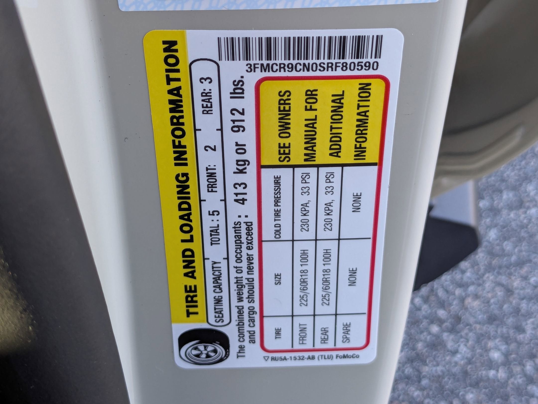 - Front Tire Size: P225/60HR18