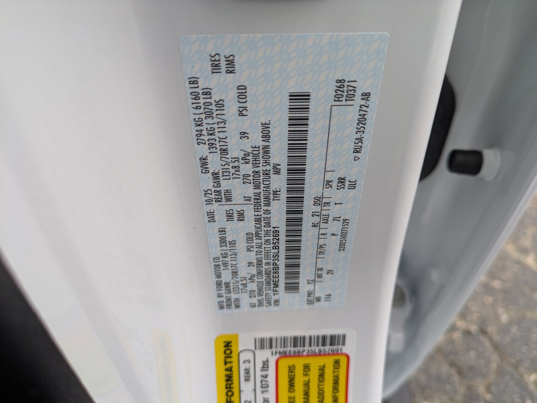 - Tires: P255/70R18 A/T -inc: full size spare tire w/TPMS