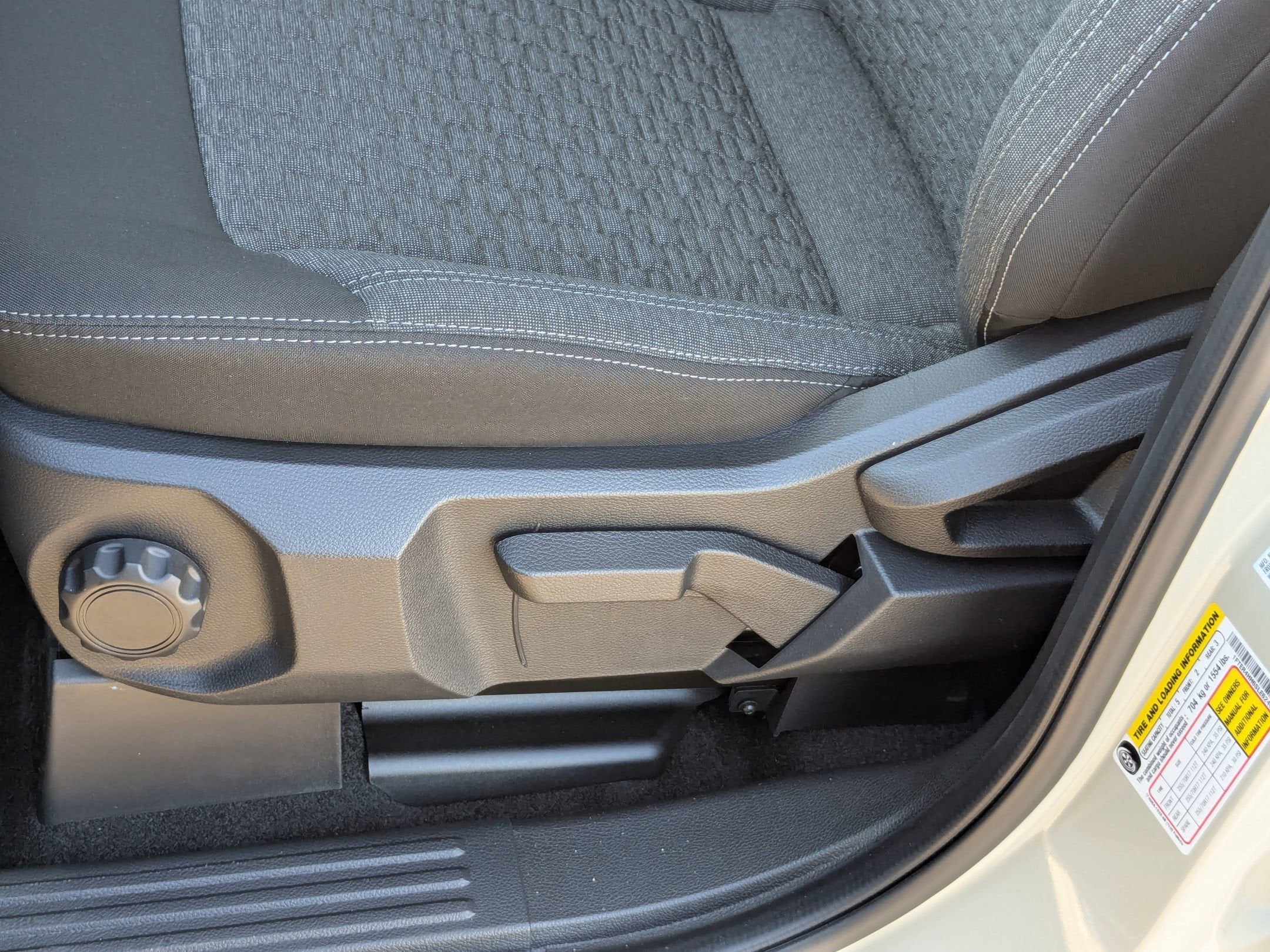 - Cloth Front Bucket Seats -inc: 8-way manual adjustable driver including lumbar, 6-way manual adjustable passenger, driver and passenger manual reclining seats, flow-through console and floor shift