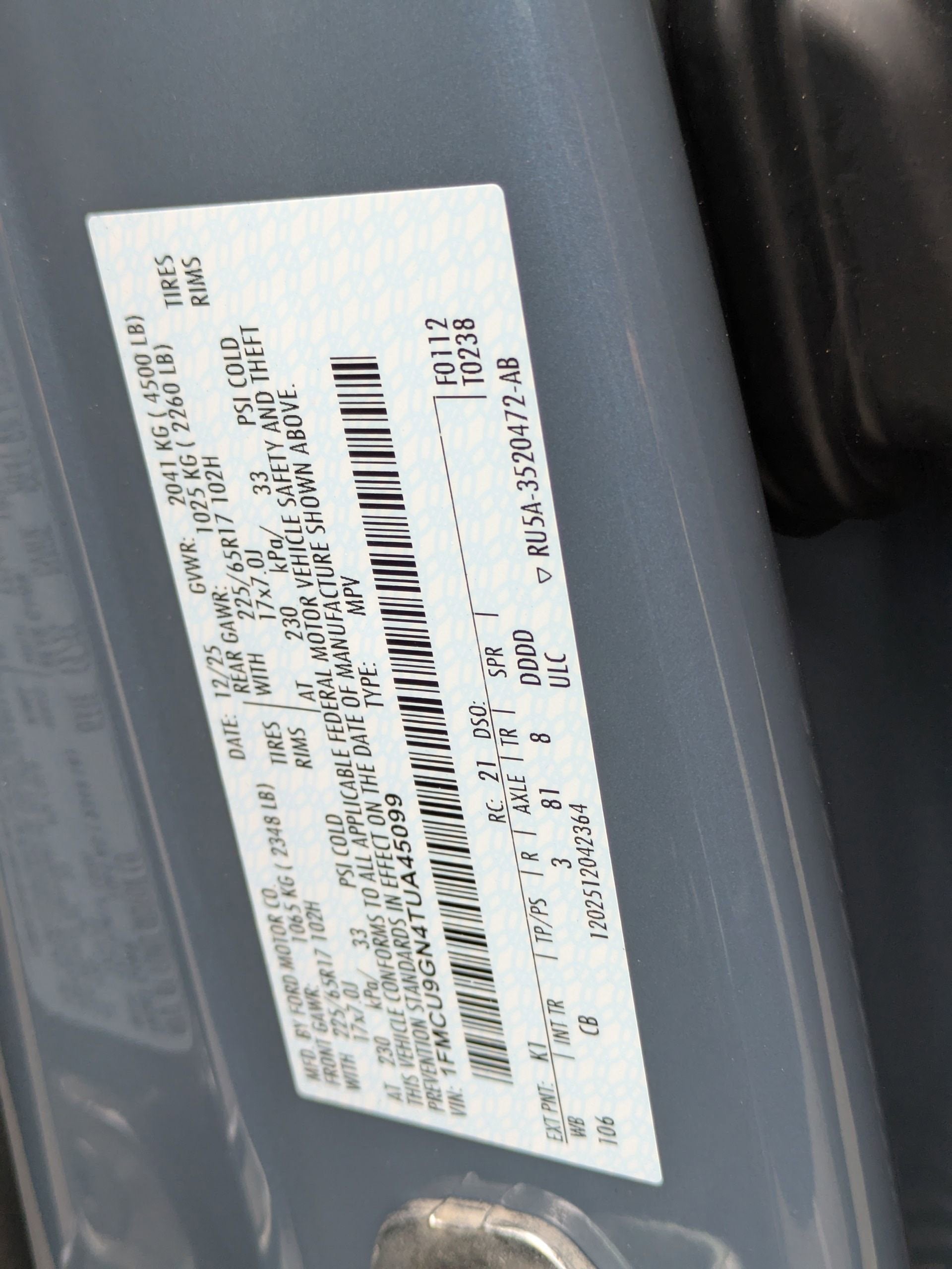 - Vehicle Name: Ford Escape