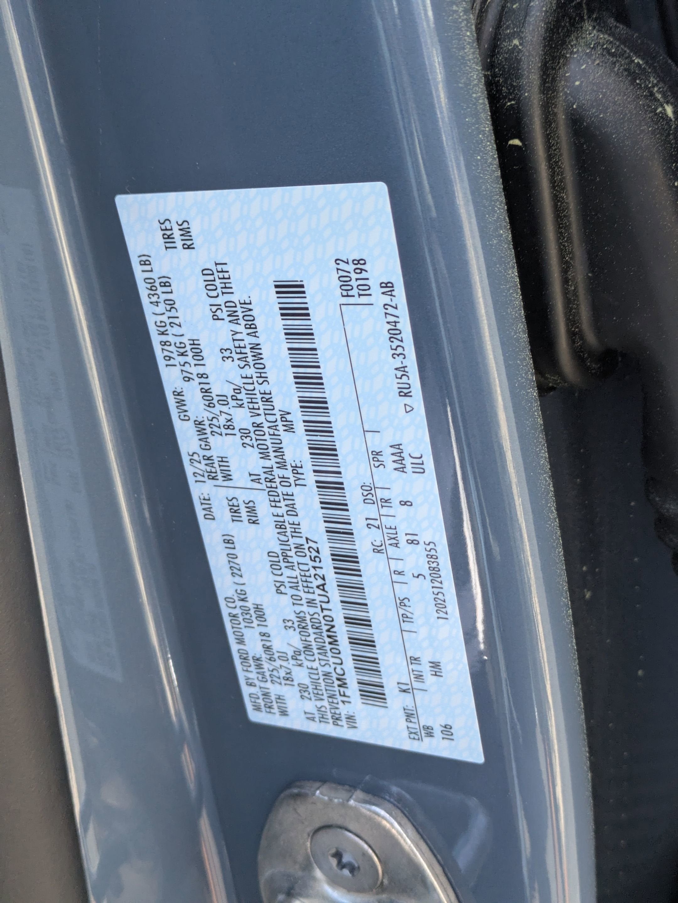- Vehicle Name: Ford Escape