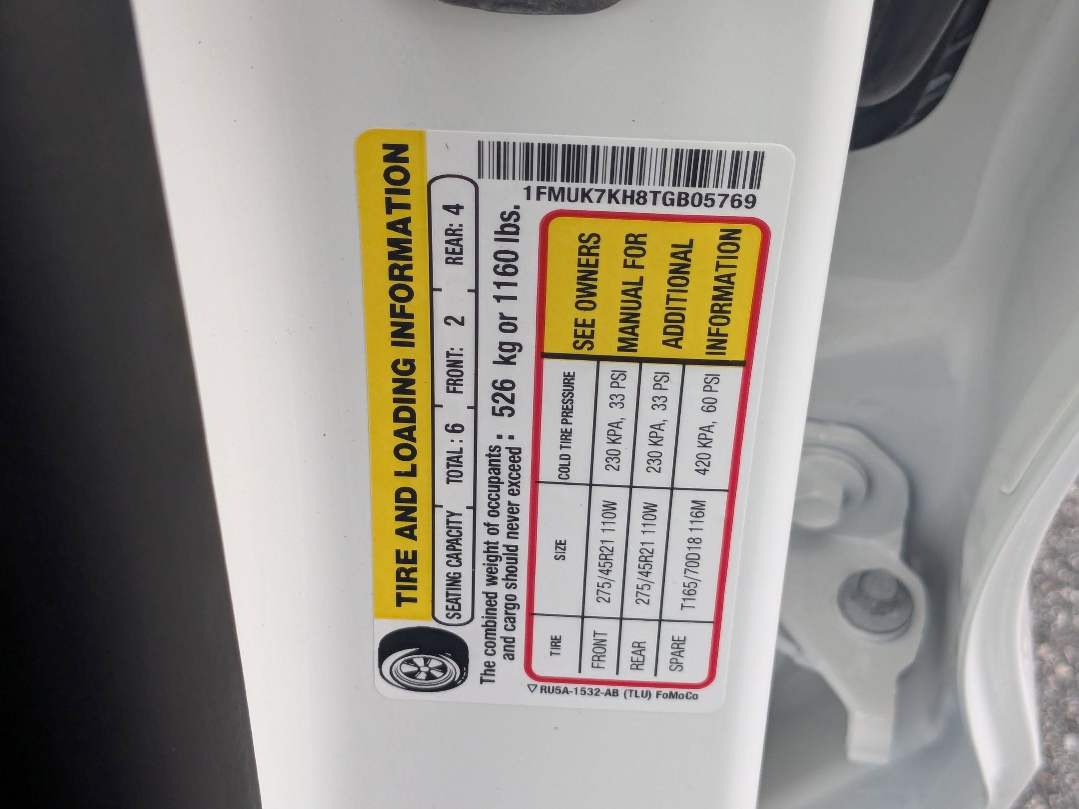 - Front Tire Size: P255/55VR20