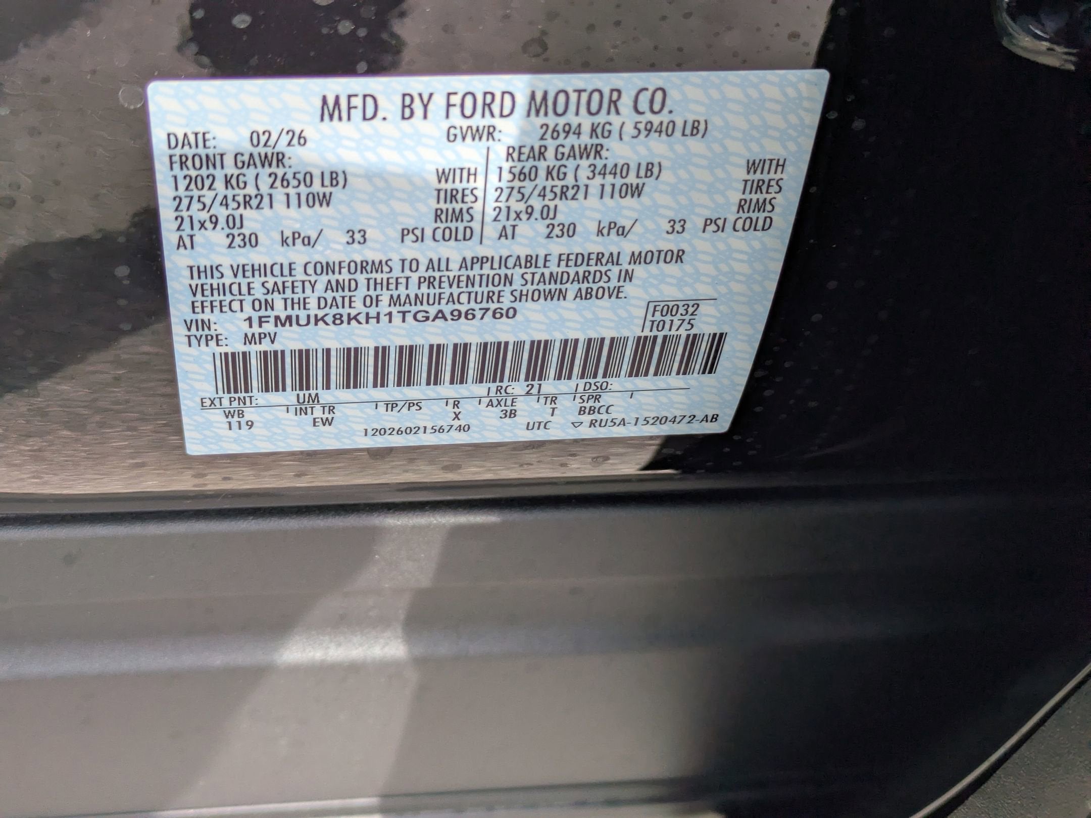 1FMUK8KH1TGA96760