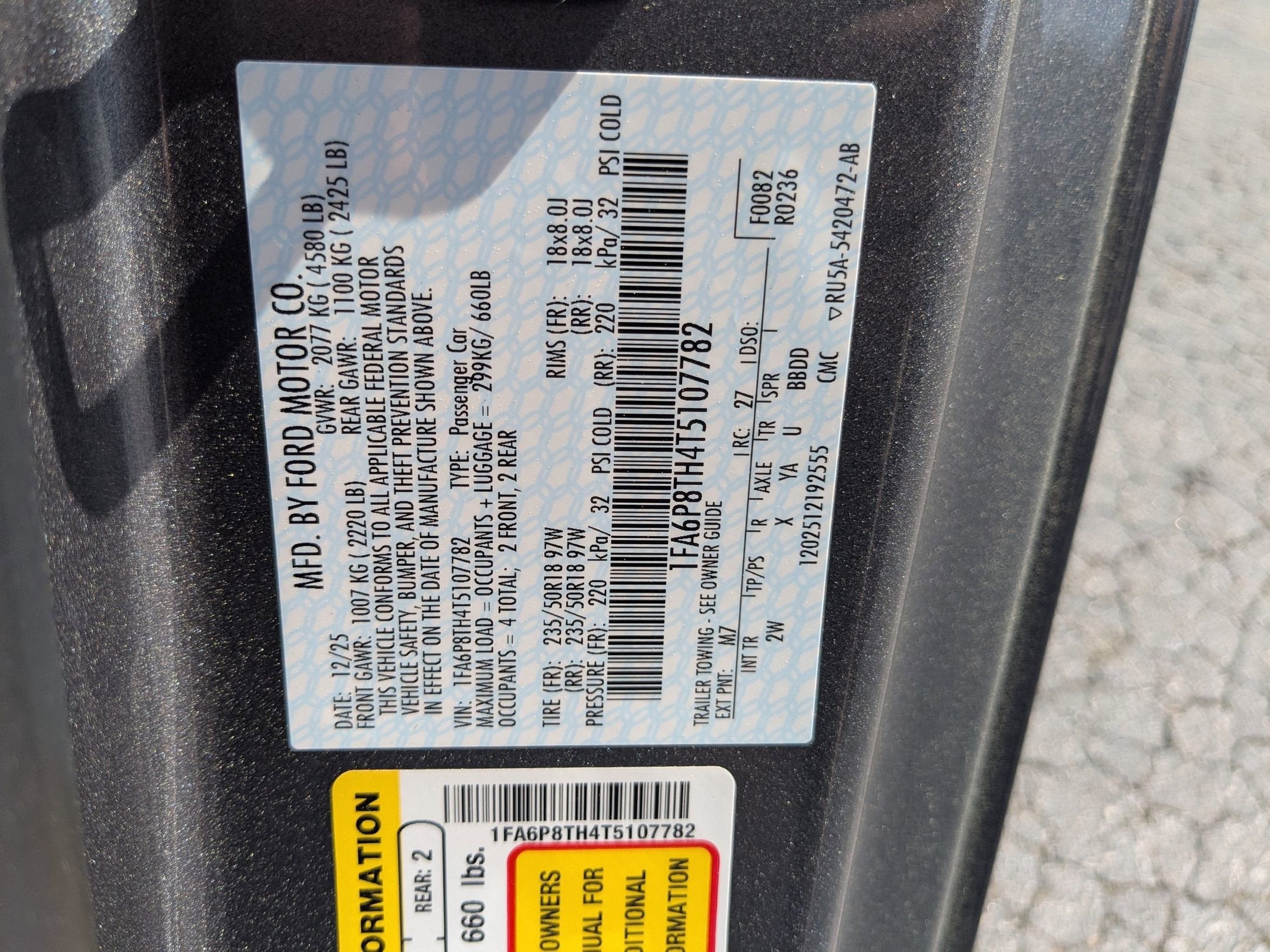 - Vehicle Name: Ford Mustang