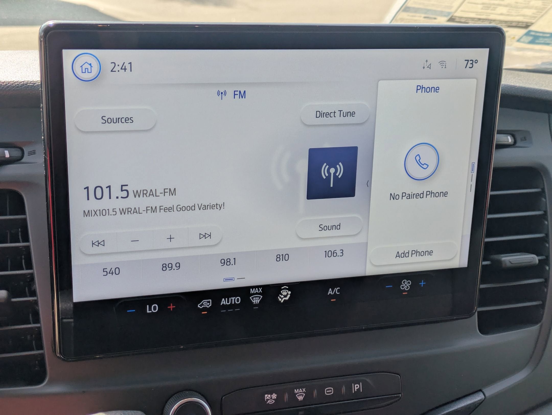 - SYNC 4 -inc: 12" center display, Bluetooth®, dual USB ports, enhanced voice recognition, electronic climate control and connectivity package which includes information on demand panel, wireless Apple CarPlay and Android Auto compatibility, cloud connected, 911 Assist, digitial owner's manual and conversational voice command recognition
