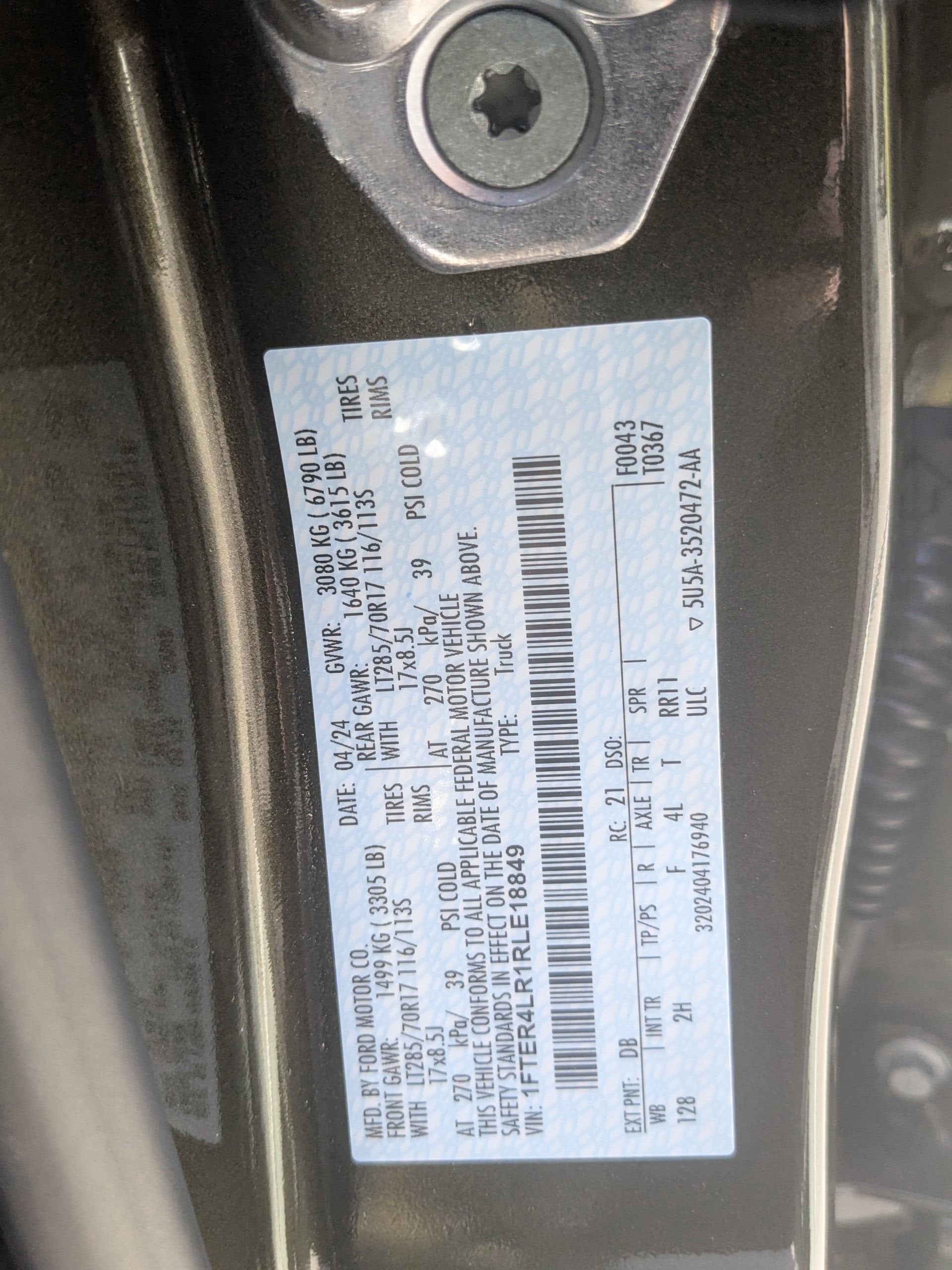 - Front Tire Size: LT285/70SR17