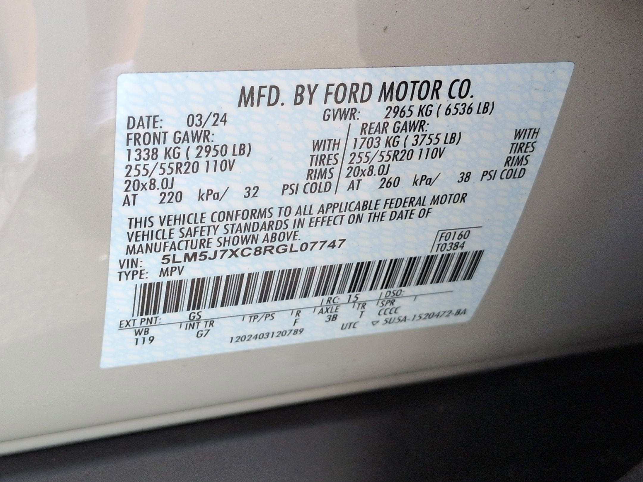 - Tires: 255/55R20 All-Season
